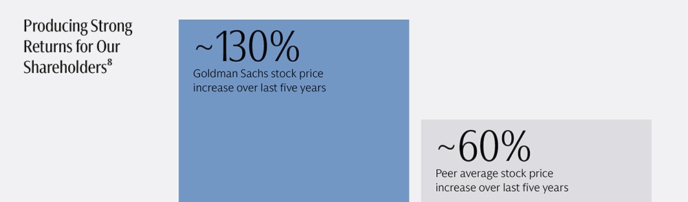 8Five-year stock price return as of December 31, 2023. Peers include MS, JPM, BAC, C.
